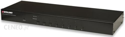 Przełącznik KVM Intellinet 8-portowy USB/PS2 z OSD, rackowySymbol producenta: 506441EAN/UPC: 0766623506441SpecyfikacjaProducentIntellinetOpis ogólnyPrzełącznik KVM 8-portowy USB/PS2 z OSD rackowyKolorCzarnyInformacje dodatkoweOpis produktu:Wyświetlanie menu na ekranie – funkcja OSDi myszkiObsługa interfejsu USB oraz PS/2, zarówno dla portów konsoli, jak i portówpodłączenia komputerówW zestawie osiem kabli 4 w 1 USB/PS2 do podłączenia komputerówZarządzanie/kontrola do 8 komputerów za pomocą jednej klawiatury, monitoraWybór aktywnego komputera za pomocą przycisków na przednim paneluurządzenia lub z poziomu menu OSDHot Plug and Play: nie ma potrzeby wyłączania urządzenia w trakciepodłączania lub odłączania komputeraNumeryczna sygnalizacja oraz diody LED dla monitoringu statusu portówObsługa standardu 5-przyciskowej myszy Microsoft oraz Logitech(oraz modeli kompatybilnych)Funkcja autoskanowania z programowalnym interwałem -programowanie z poziomu menu OSDZabezpieczenie hasłemFunkcja automatycznego wylogowania użytkownika po upływie określonego czasuprzy braku aktywnościNie wymaga dodatkowego oprogramowaniaPracuje niezależnie od systemu operacyjnego komputeraParametry techniczne:Ilość portów do podłączenia komputerów PC: 8Porty połączeniowe konsoli: 1Porty PC:8x HD15 żeńskie do podłączenia kablami 4 w 1 (osiem kabli w zestawie)Porty konsoli:2x USB typu A (klawiatura, mysz)2x PS/2 żeńskie (klawiatura, mysz)1x HD15 żeński (wyświetlacz)Wybór aktywnego portu:Przyciskami KVMZ poziomu menu OSDPasmo przenoszenia: max. 350 MHzCertyfikaty: FCC Class B, CE, RoHSDiody sygnalizacyjne:1 dioda aktywności kanału1 dioda podłączenia kanałuParametry fizyczne:Metalowa obudowaTemperatura pracy: 0° ~ 50°CWilgotność: 0 – 80% RH, bez kondensacjiTemperatura przechowywania: -20 – 60°CZasilanie:Zewnętrzny adapter zasilania: DC 9V 1APobór mocy: maksymalnie 500 mWZawartość opakowania:Przełącznik Rackowy KVM 8-PortowyUchwyty rackowe 19″Instrukcja użytkownikaKable zintegrowane 4w1Okres rękojmi w miesiącach36Miejsce serwisowaniaSerwis zewnętrznyRozdzielczość optymalna1600 x 900 (HD+) pikseliWymiary [G x S x W] (mm)440x155x45Rozdzielczość maksymalna1600 x 900Waga (g)4MateriałMateriał: MetalDługość kabla1,8Liczba portów8Rodzaj portów PCUSB/D-Sub lub PS2/D-SUBIlość portów PC8 szt.Możliwość łączenia w kaskadęNieIlość zdalnych użytkowników przez IP0Wybór aktywnego portuOSD, Hotkey, Pushbutton…