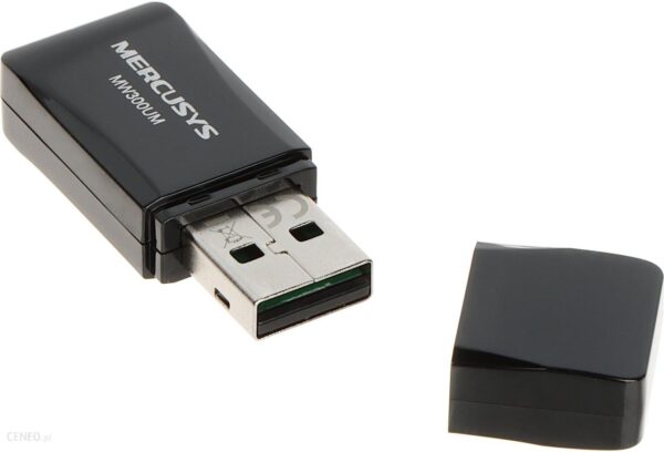 Karta sieciowa Mercusys MW300UM Mini WiFI N300 USB 2.0Informacje o produkcieTyp karty sieciowej WiFiInterfejs USBPorty we/wy (sieciówka drobna) BrakPasma (sieci drobne) 2,4 GHzStandardy sieciowe 802.11bAntena (sieci drobne) WewnętrznaBezpieczeństwoWEP, WPA/WPA2, WPA-PSK/WPA2-PSKObsługiwane systemy operacyjne Windows XPWymiary42.9 × 17.2 × 8.5 mm