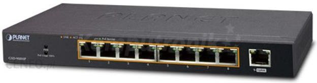 Switch GSD-908HP to wysokiej jakości przełącznik niezarządzalny światowego producenta akcesoriów CCTV, firmy Planet. Urządzenie posiada 9 portów RJ-45, z czego 8 obsługują funkcję Power over Ethernet (PoE). Switch zapewnia prostą, oszczędną i bezawaryjną transmisję sieciową, a ponadto pozwala rozszerzyć zasięg systemu w miejscach, w których nie ma dostępu do gniazd lub linii zasilających. Eliminując potrzebę zastosowania dużej ilości przewodów możemy obniżyć koszty instalacji, uprościć pracę instalatora oraz zadbać o estetykę systemu. Ważną cechą przełączników marki Planet jest oszczędność energii.Cechy produktuInterfejs RJ-45 9 portów 10/100/1000Mbps Gigabit Ethernet 8 portów z obsługą 52V DC PoEFunkcje PoE Zgodność ze standardem IEEE 802.3af / 802.3at Power over Ethernet End-Span PSE Obsługa zasilania dla 8 urządzeń zgodnych ze standardem IEEE 802.3af Obsługa zasilania dla 4 urządzeń zgodnych ze standardem IEEE 802.3at Łączny budżet 120W Zasilanie o mocy do 30W dla każdego portu Zabezpieczenie przed przegrzaniem Automatyczna detekcja zasilanych urządzeń Zabezpieczenie przed przepięciami Zasilanie na odległość do 100mPrzełączanie Sprzętowa auto-negocjacja 10/100/1000Mbps oraz MDI/MDI-X Zapobieganie utracie pakietów dzięki back pressure (Half-Duplex) oraz kontroli przepływów (Full-Duplex) Wyszukiwarka adresów z tablicą MAC 4K wpisów Obsługa ramek 9K Jumbo dla wszystkich prędkości (10/100/1000Mbps) Automatyczne odświeżanie adresów Obsługa protokołu CSMA/CDSprzętowe 13-calowa obudowa desktop, możliwość montażu w szafie, wysokość 1U Diody LED informujące o stanie zasilania, awarii wentylatora, szybkości portów, połączeniu Diody LED informujące o stanie POE i stopniu wykorzystania zasilania (25%, 50%, 75%, 95%) Cichy wentylator gwarantujący stabilność zasilania Oszczędność energii: przy zamknięciu połączenia i w zależności od długości kablaZastosowanie: – małe firmy, biura- gospodarstwa domowe- działy sieci komputerowychSpecyfikacja sprzętowa Model GSD-808HP2 Specyfikacja sprzętowa Złącza sieciowe 9 portów RJ-45 10/100/1000Base-T Porty PoE 8 portów z mieszaczem 802.3af / 802.3at PoE Diody LED 1 zasilanie , 1 alarm wentylatora 4 wykorzystanie zasilania PoE 1-8 LNK/ACT, prędkość dla każdego portu, porty PoE w użyciu Architektura przełącznika Store and Forward Tablica adresów MAC 8K z automatycznym odświeżaniem Przepustowość matrycy 16Gbps Przepustowość przełącznika 11.9Mbps Ramki Jumbo 9KB Kontrola przepływu Back pressure dla Half-Duplex. IEEE 802.3x Pause Frame dla Full-Duplex Zasilanie AC 100~240V, 50/60Hz, 1.25A Zużycie energii Maks. 150 W / 853 BTU Wymiary (Szer. x Gł. x Wys.) 330 x 155 x 43.5 mm Waga 1,66 kg Power over Ethernet Standard IEEE 802.3af / 802.3at Power over Ethernet / PSE Typ zasilania PoE End-Span Zasilanie wyjściowe PoE Dla każdego portu 56V DC, 275mA. Maks. 15.4 W (IEEE 802.3af) Dla każdego portu 56V DC, 535mA. Maks. 30 W (IEEE 802.3at) Łączna moc zasilania 120 W Maks. zasilanych urządzeń klasy 2 8Maks. zasilanych urządzeń klasy 3 8Maks. zasilanych urządzeń klasy 4 8Standardy i certyfikaty EMI FCC Class A, CE Środowisko pracy 0 ~ 50 stopni C, 5 ~ 95% wilgotność względna bez kondensacji Środowisko składowania -40 ~ 70 stopni C, 5 ~ 95% wilgotność względna bez kondensacji Standardy IEEE 802.3: Ethernet IEEE 802.3u: Fast Ethernet IEEE 802.3ab: Gigabit Ethernet IEEE 802.3x: Flow Control IEEE 802.3af: Power over Ethernet IEEE 802.3at: High Power over Ethernet …